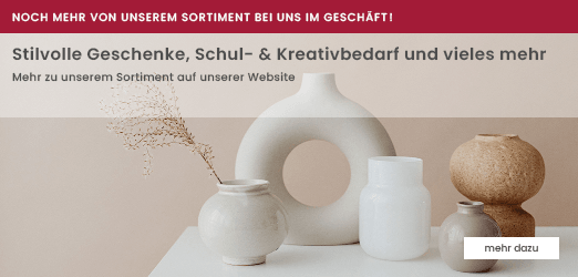 Unser Online-Shop ist auf Bücher ausgerichtet, aber noch mehr an GESCHENKEN, SCHUL- & KREATIV-BEDARF findest du bei uns im Haus.
